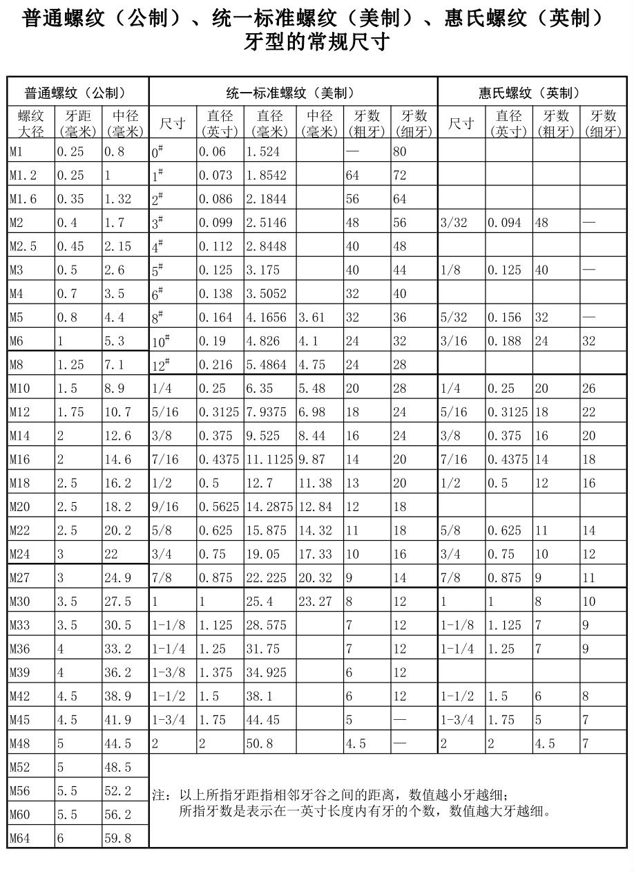 普通螺紋(公製)、惠氏螺紋(英製)、統一標準螺紋(美製)牙型的一些(xiē)基(jī)本尺(chǐ)寸