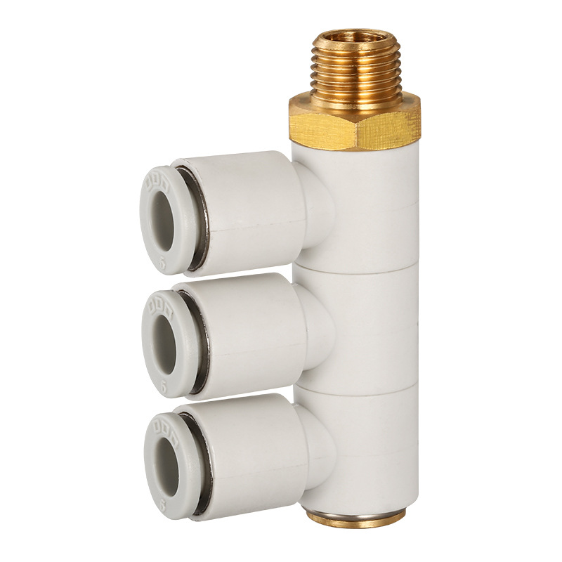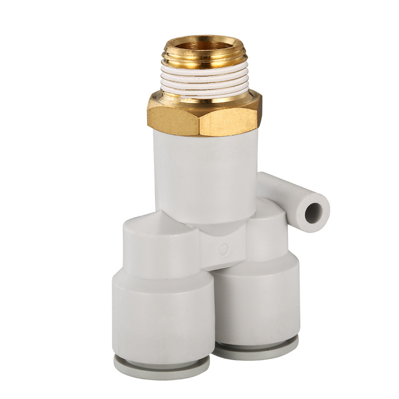 氣動快速接頭是一種主要用於空氣配管、氣動工具的快速接頭,不需要(yào)工(gōng)具就能實現管(guǎn)路連通或斷開(kāi)的接頭不(bú)鏈接時(shí)——當母體的(de)套圈移到另一端時,不鏽鋼(gāng)珠自動向外滾動,子(zǐ)體因母體與子體共同閥門彈簧力的作用力運作下而斷開,子體與(yǔ)母體的閥門(mén)各自(zì)閉合,瞬間阻斷流體流動。