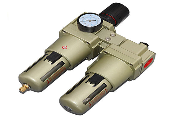 氣壓傳(chuán)動係統中,過濾度一般為50-75μm,調壓範圍為(wéi)0.5-10Mpa,如需過濾精度為5-10μm,10-20μm,25-40μm,及調壓(yā)為0.05-0.3Mpa,0.05-1Mpa二大(dà)件無管連接而成的組件稱為二聯件。二大(dà)件是多數氣動係統中不可缺少的氣源裝(zhuāng)置,安裝在用氣設備近處,是壓縮空氣質量的最後(hòu)保證。三大(dà)件的安裝順序依進氣(qì)方向(xiàng)分(fèn)別為(wéi)空氣過濾器、減壓閥和油霧器(qì)。空氣過濾器(qì)和減壓閥組合在一起可以稱為氣動二聯件。有些場合不能允許壓縮空氣中存在油霧,則需要使用油霧分離(lí)器將壓縮空氣中的油霧過濾掉。  減壓閥可對氣源(yuán)進行穩壓,使氣源處於恒定(dìng)狀態,可減小因(yīn)氣源氣壓突變時對閥門或執行器等硬件的損傷。過濾器用於(yú)對氣源的清潔,可過濾壓縮空氣中的水份,避免水份隨(suí)氣(qì)體進入裝置。  油霧器可對機體運動部件進行潤滑(huá),可以對不方(fāng)便加潤滑油的部件進(jìn)行潤滑,大大延長機體的使用壽命。